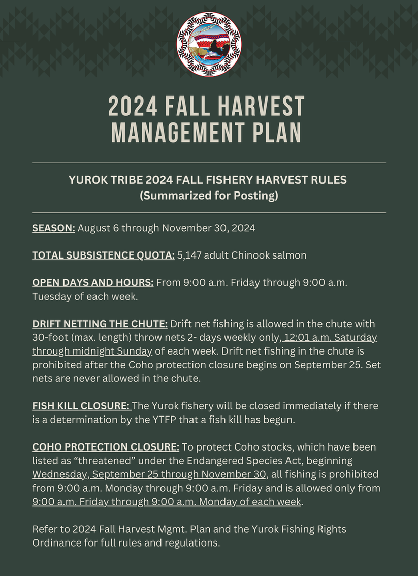 The Yurok Tribal Fisheries Program YTFP is dedicated to understanding, managing, conserving, and restoring fish populations of the Klamath Basin for the benefit of present and future generations of Yurok People.
