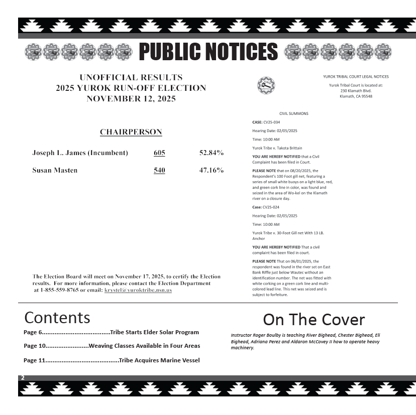 Yurok Today - The Voice of the Yurok People - November Edition - 2025The Yurok TribeDec 1, 20251 min readYouth Learn to Run Heavy Equipment Young Native Women, Men Thrive in Complex Training Environment Download the full Newsletter Here Download the full Newsletter Here